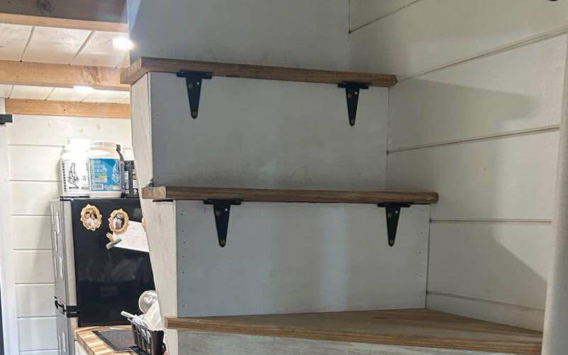 “These storage steps in a homemade tiny home look like an accident waiting to happen”