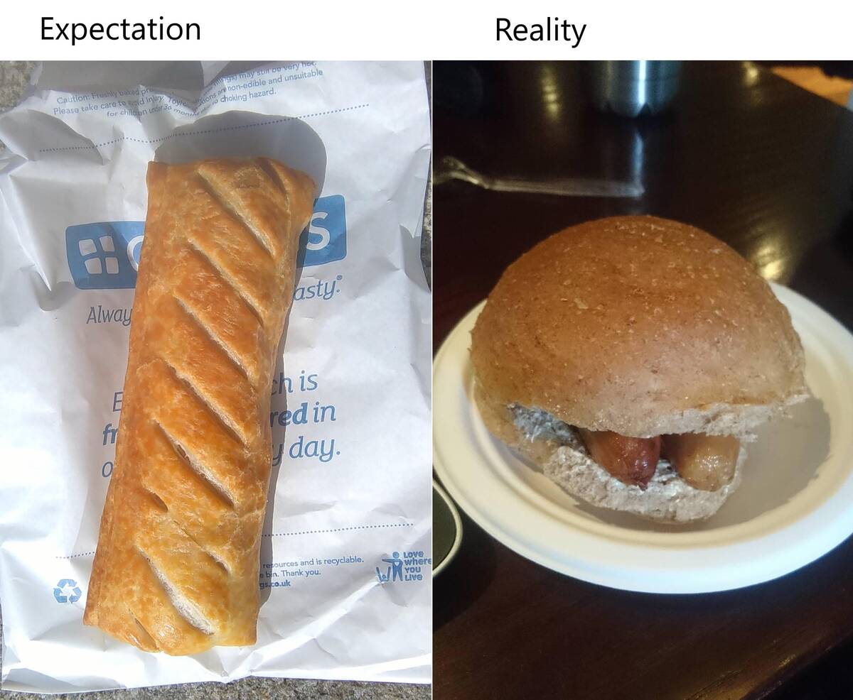 The difference between a sausage roll and… whatever that sandwich is supposed to be, is as wide as my disappointment! When you brace for flaky pastry goodness, but get two tiny sausages barely wrapped in a roll, you just have to laugh and call it a learning experience.
