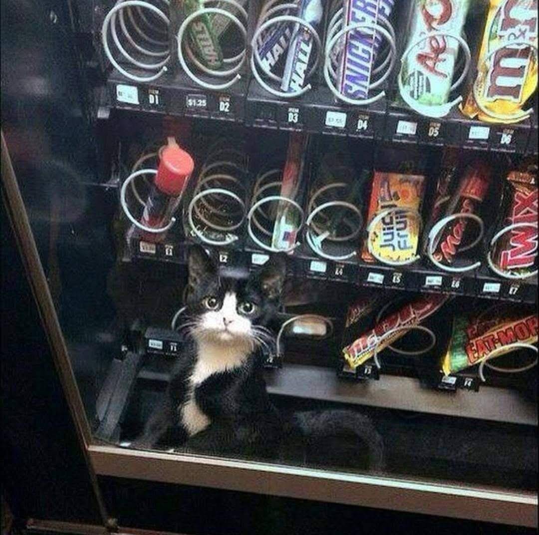 Is this the new limited edition snack behind the glass? Best vending machine surprise ever—definitely don’t need any coins for extra cuteness. Those wide eyes are just begging, ‘Pick me, I dare you.’ Someone needs to give this operator a treat instead of a quarter.