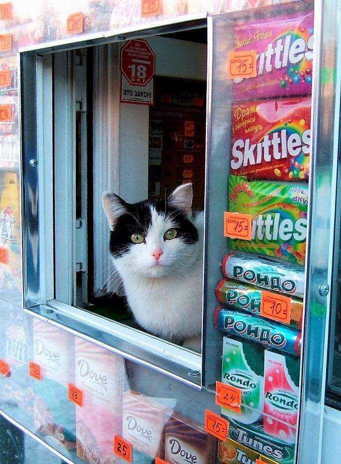 A warm, inviting stare across the counter—could this be the world’s friendliest barista? I’m tempted to order a saucer of milk just to see what happens. Service with a side of whiskers is guaranteed to brighten any customer’s day.