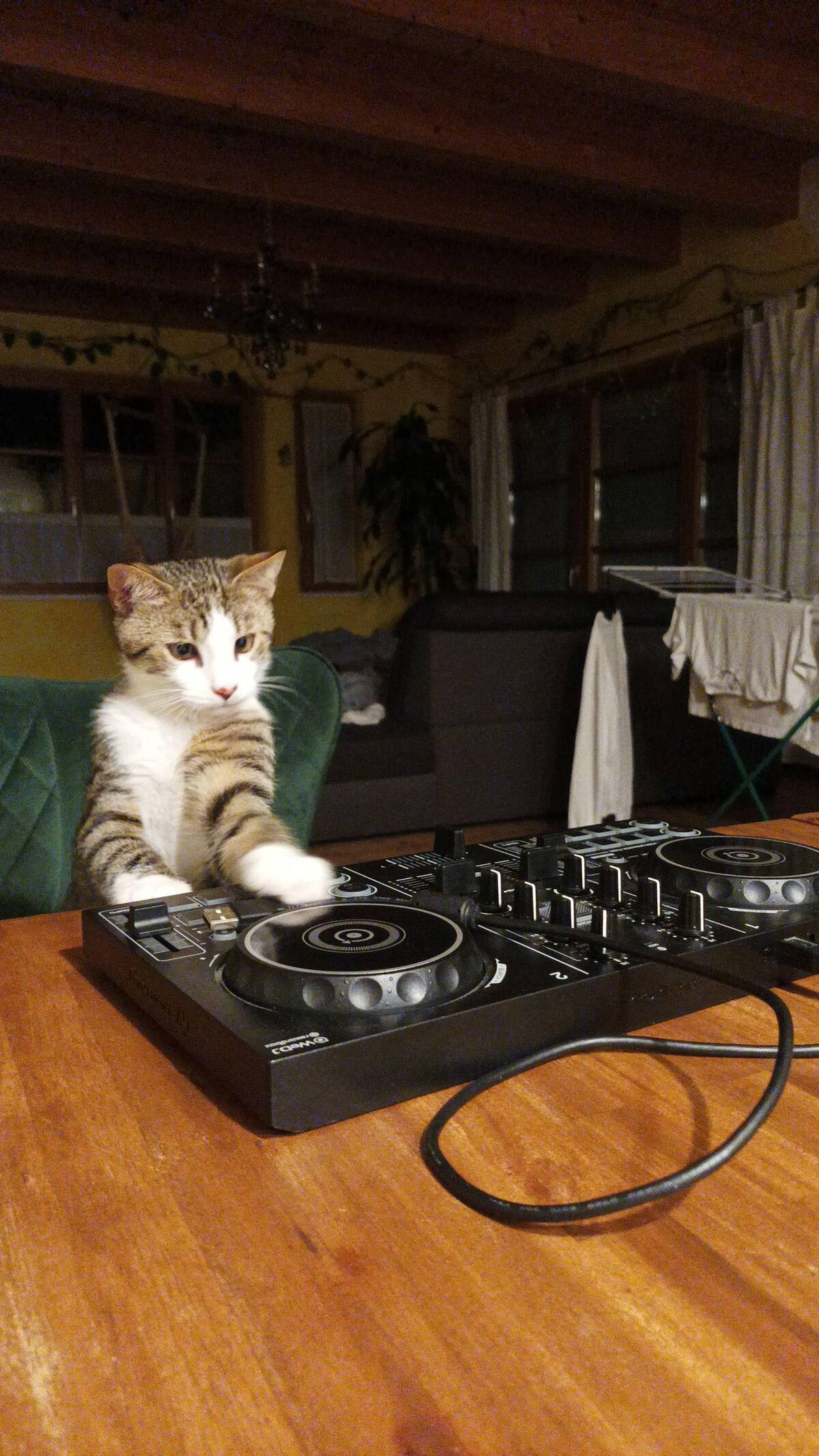 Those turntables are in excellent paws—party guaranteed to go from zero to wild in no time. Mixmaster in the house! Set your musical expectations high, because when the DJ’s this cute, every tune is a paw-some hit.