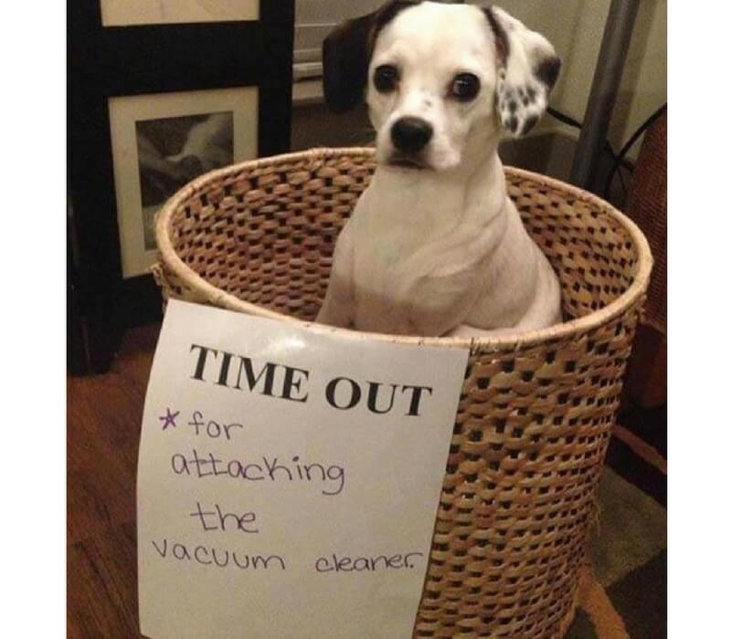 This is Topher. He got mad at the vacuum cleaner and tried to bite it. Now he is having a time-out. He understands why this punishment is necessary, but he will still attack the vacuum cleaner again next week.