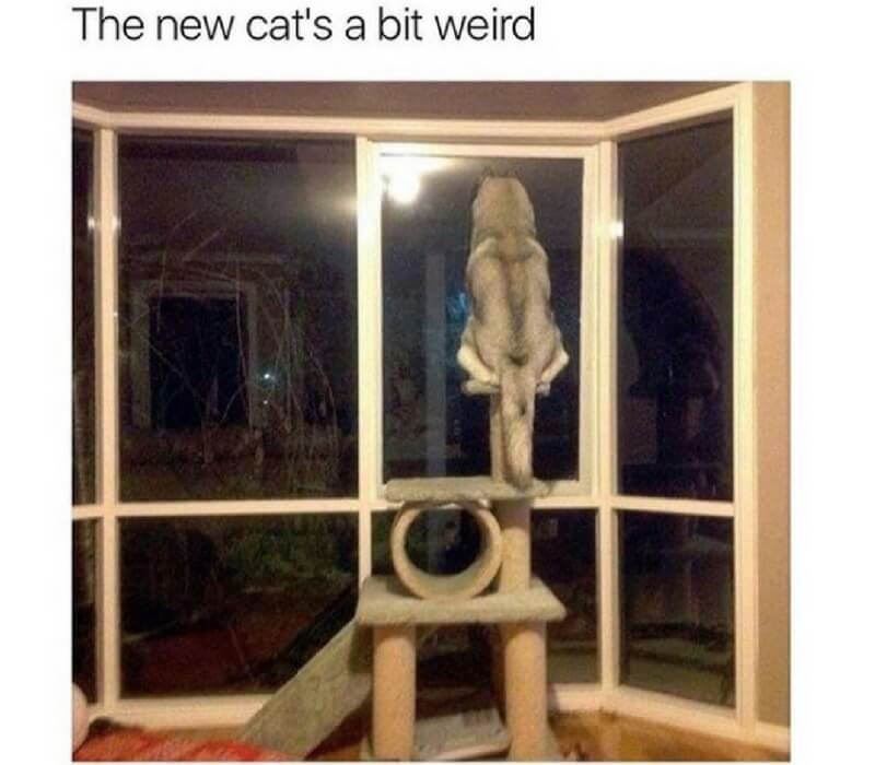 Quentin knows that the cat tree is for cats. He doesn’t mean to intrude on their territory, but he must get to higher ground so he can have the best view of the front yard.