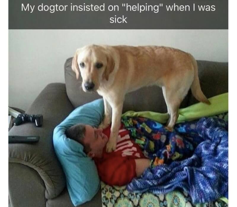 This sweet pupper just wants to help his sick owner feel better. He’s giving his best attempt at a shoulder massage, but we’re not sure it’s doing much for those tired muscles.