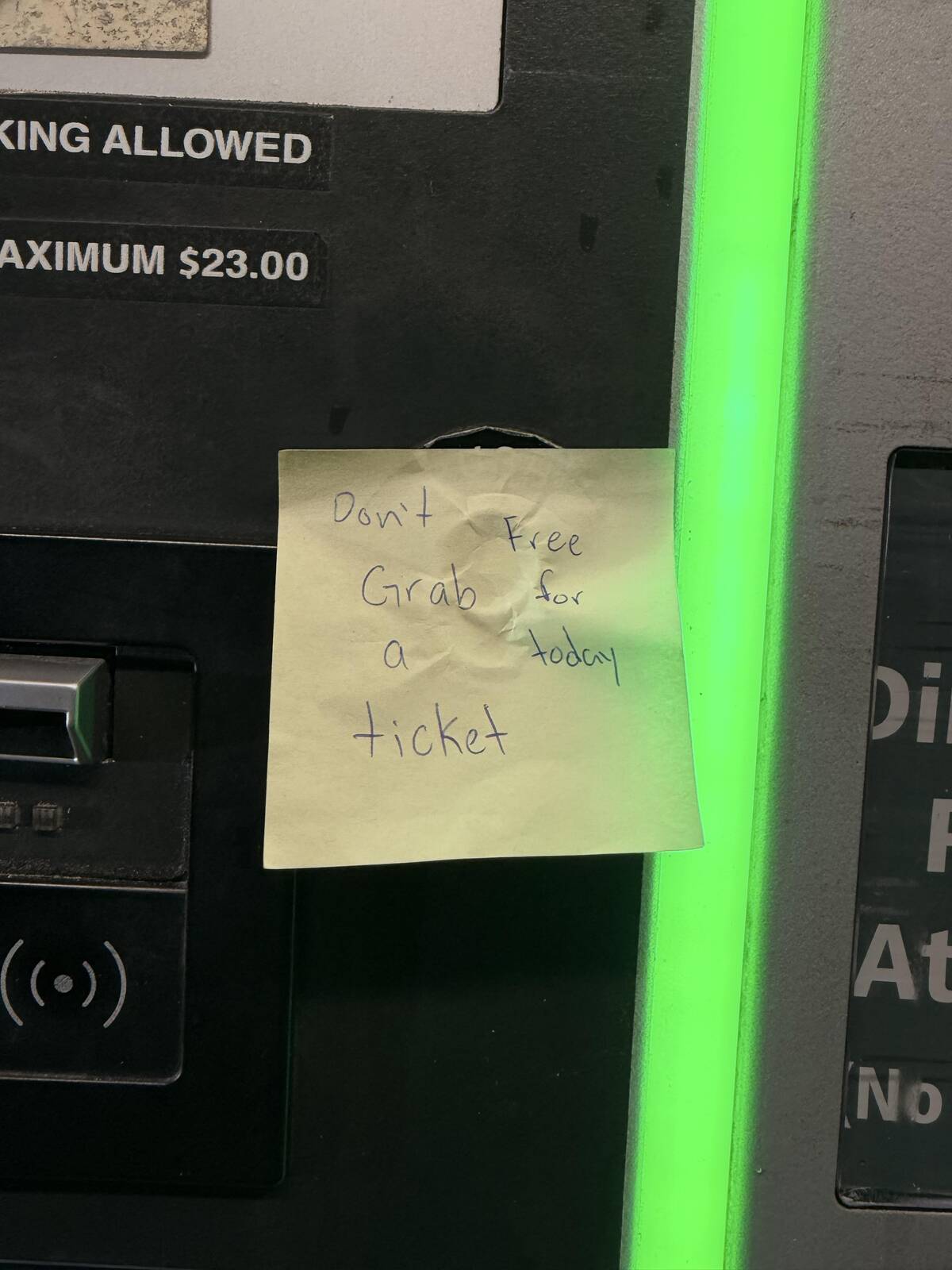 Don’t grab… free… for today… ticket? I wish I could, but I’m not sure if the universe wants me to take this ticket or leave it exactly where I found it.