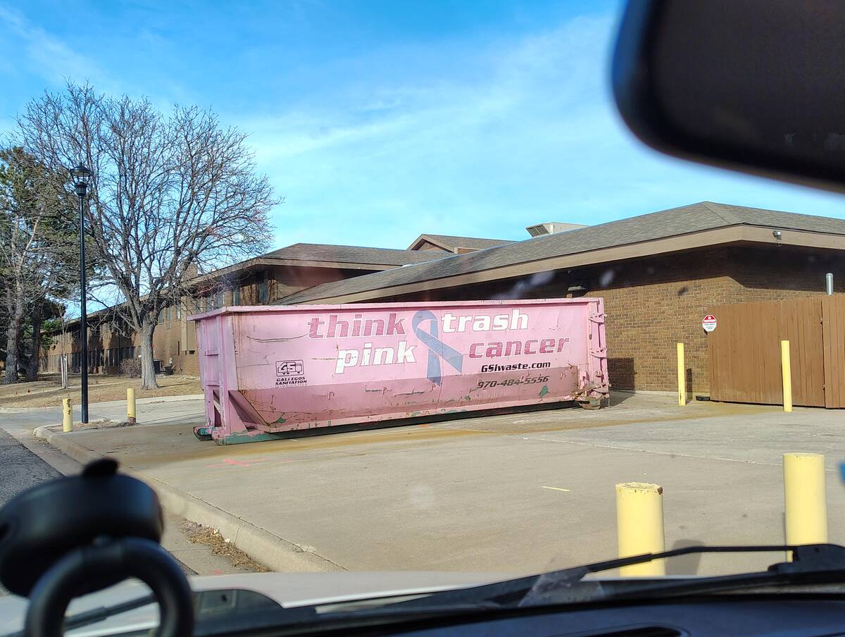 I’m trying my best, but my brain can’t unscramble this message. Should I think about trash? Or pink? Maybe cancer? That dumpster’s making me contemplate more than where my garbage goes!