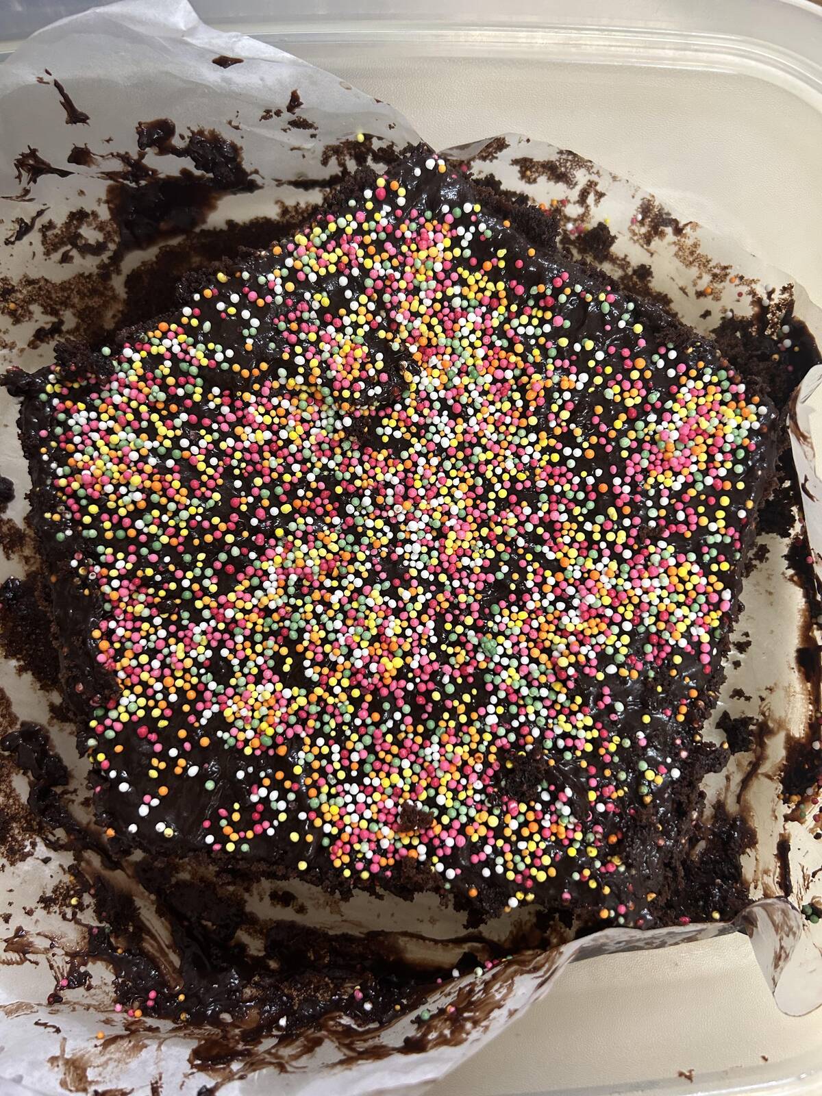 You know what, that’s bold! Sometimes ‘rustic’ is a style choice, and those sprinkles did not come to play. Presentation aside, I’m still betting it’s delicious. When in doubt, add more sprinkles. This cake has personality (and a lot of chocolate).