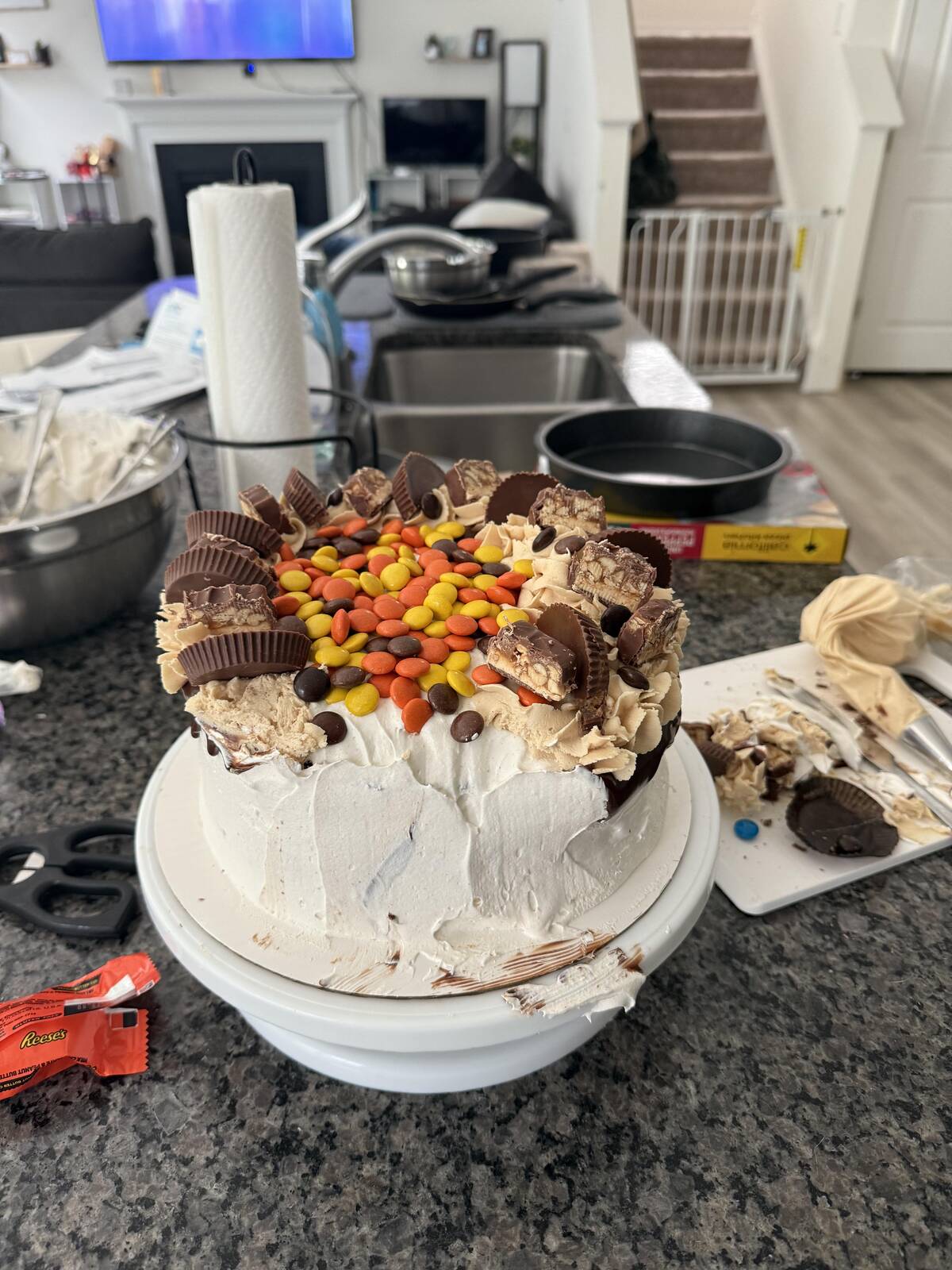 Is it abstract art or a grocery masterpiece? I say both! This cake proves sometimes you just have to let the Reeses and frosting run wild. When it comes to kitchen creativity, all rules are off. Give it up for edible modern art!