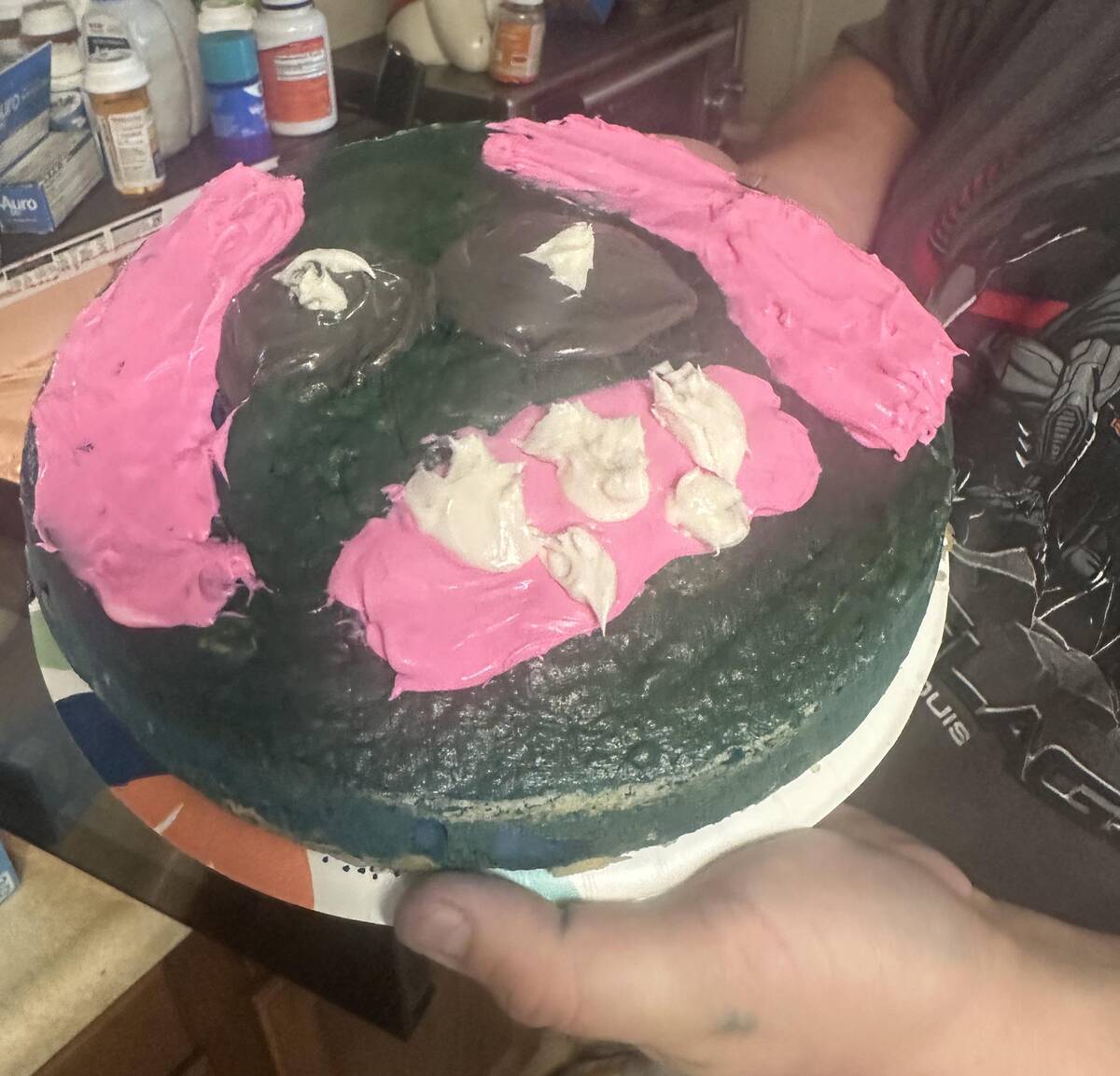 “Cake box ruined the writing on the bottom:”