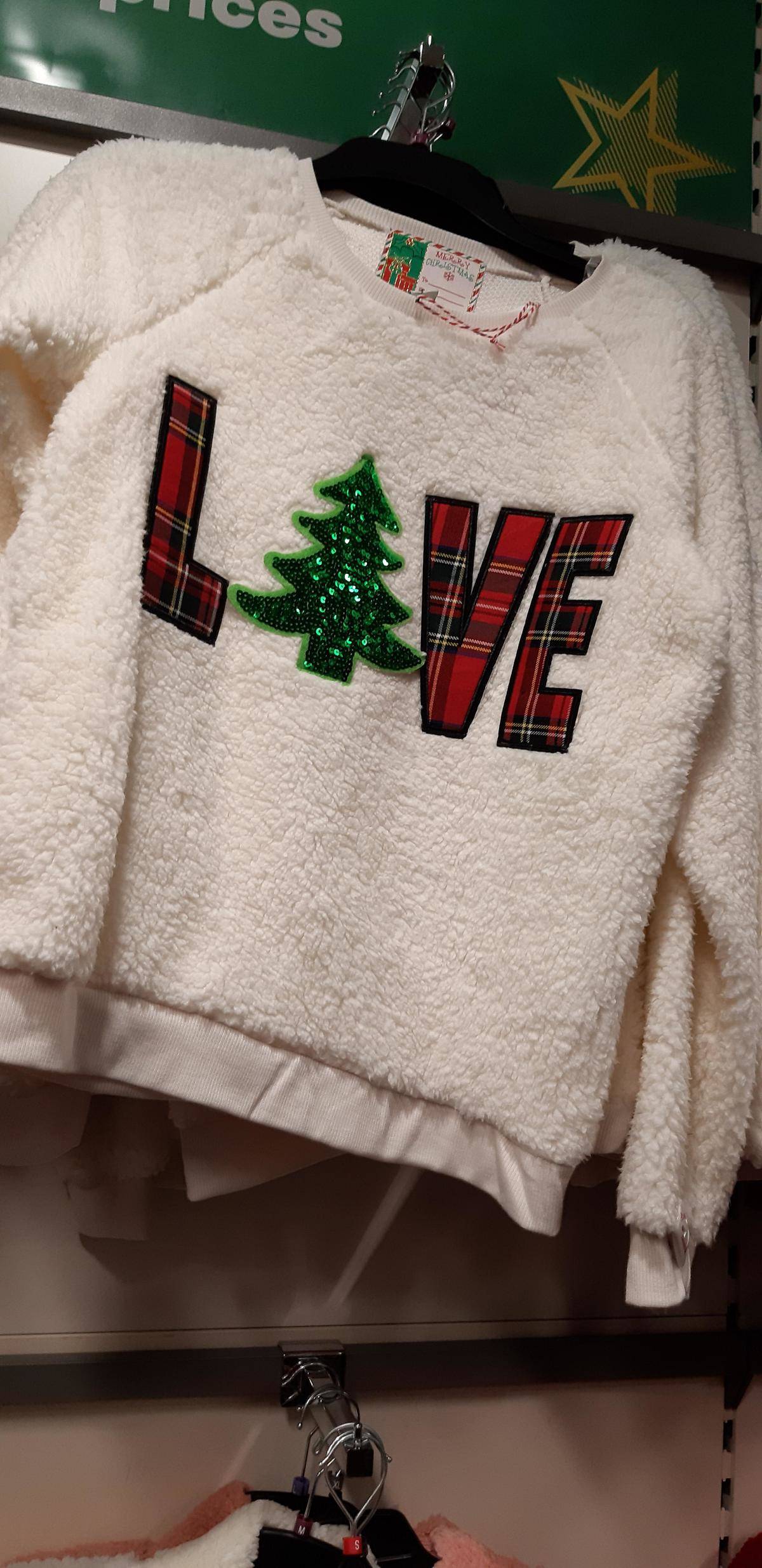 If anything, a Christmas tree looks more like the letter A than the letter O. This sweater looks like it says “Lave” more than it looks like it says “Love.” However, there will still be plenty of shoppers who see the soft fleece, combined with the holiday print and won’t be able to resist making the purchase.