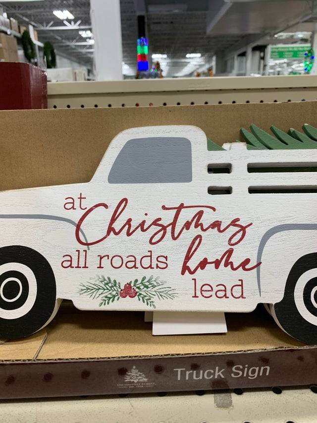 We’re all for creativity, but when creative word placement interferes with the meaning of a sentence, we’ve got other problems. What does “at Christmas all roads home lead” mean? It sounds like something E.T. would say.