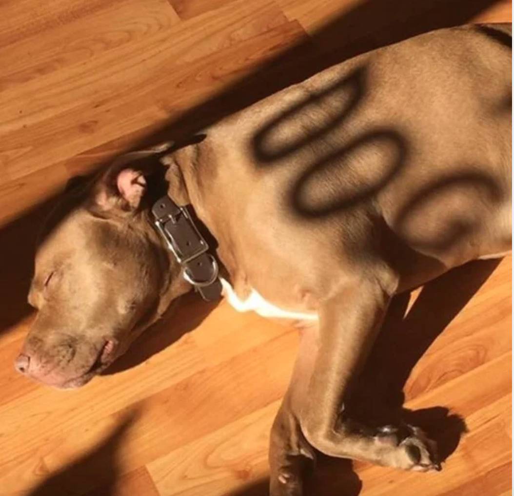 Apparently, yes—when that dog happens to have the word “dog” cast onto its body by the sunlight.