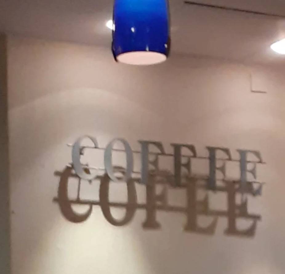 What was likely meant to be a charming café sign quickly turned into a humorous typo—thanks to some unfortunately placed ceiling lights.