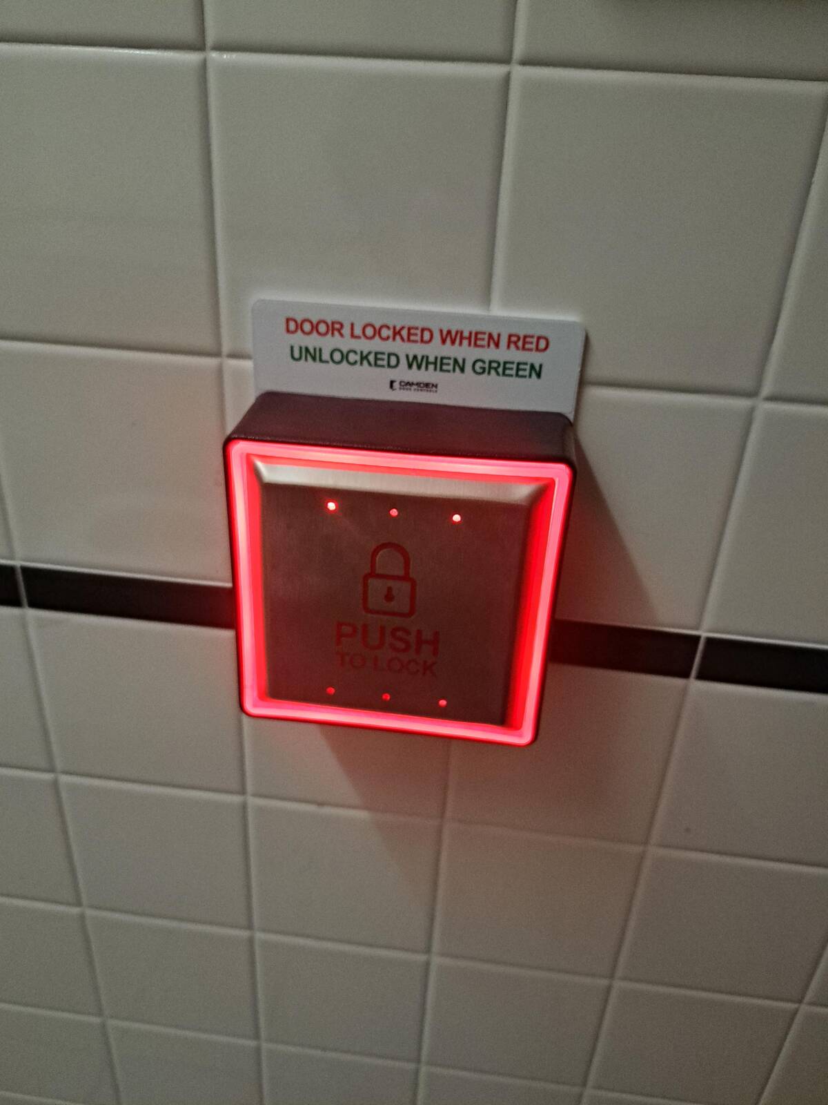 It’s like the bathroom version of high-tech security! No more clunky latches—just a big button with glowing lights. I imagine people pressing it with unnecessary drama, savoring their moment of futuristic privacy. Makes every bathroom break feel a bit more special.