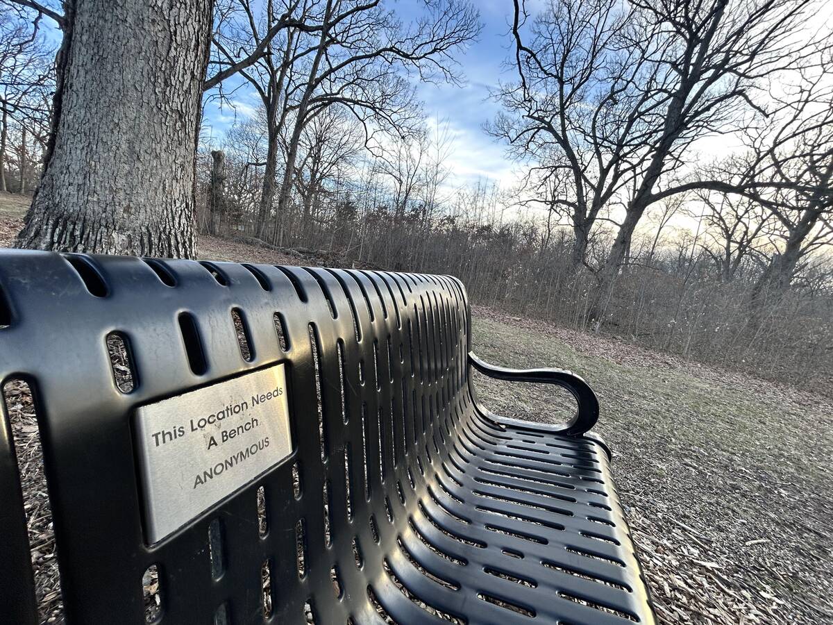 “This bench tag on top of a hill at the park.”