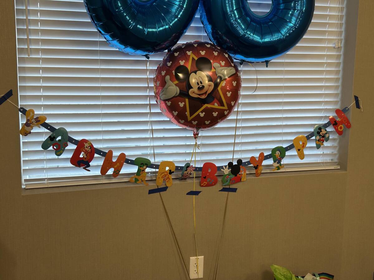 Nothing says ‘happy birthday’ like a banner that’s had a bit too much fun. Are we spelling ‘HAPPRBN’? That’s a new one. Balloons and Mickey Mouse can’t save the day—this party is proudly off the rails.