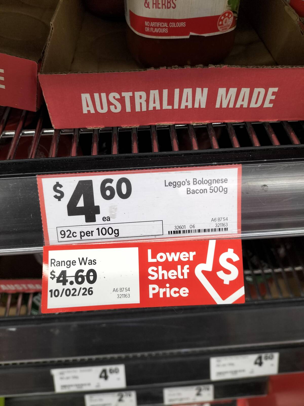 Australia’s finest store, proud of its home-grown goods—but what exactly changed about the price? Who needs bargains when we can get a lower shelf with the same price and a patriotic sign? At least the bacon sauce is still here.