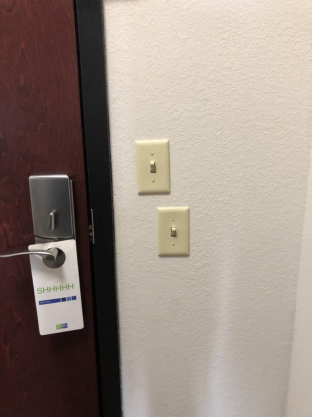 Yes, the light switches are aligned so perfectly—if by ‘perfectly’ you mean a confusing stair-step for your eyes. Who decided that this was optimal? Guests will definitely pause and second-guess which switch does what, but hey, you get points for symmetry in chaos.