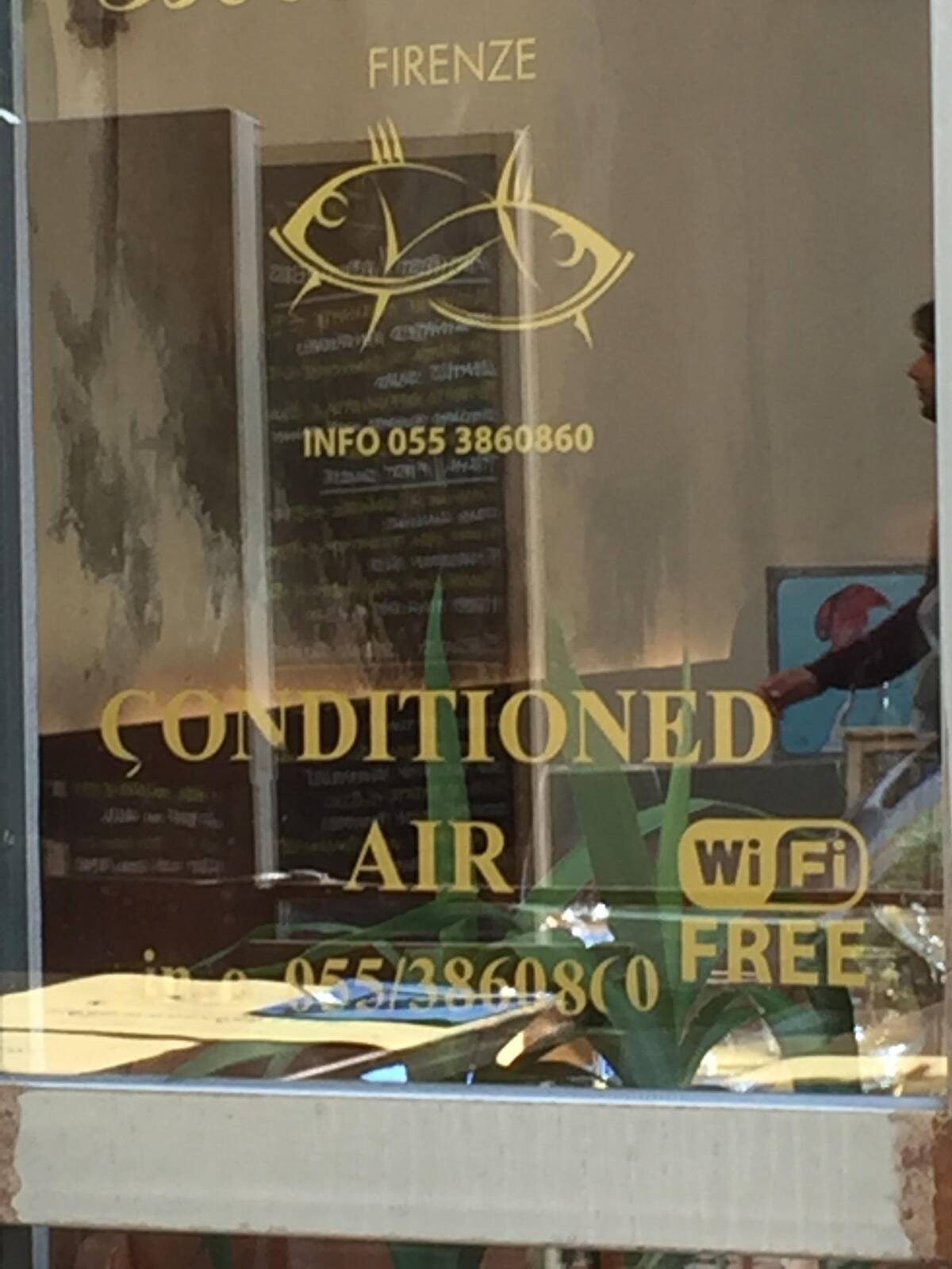 There’s nothing like a restaurant window sticker puzzle to make you squint and rearrange things in your head. Clearly spelling wasn’t a priority. If you can figure out what service they’re actually offering, you deserve an award (and probably a meal).