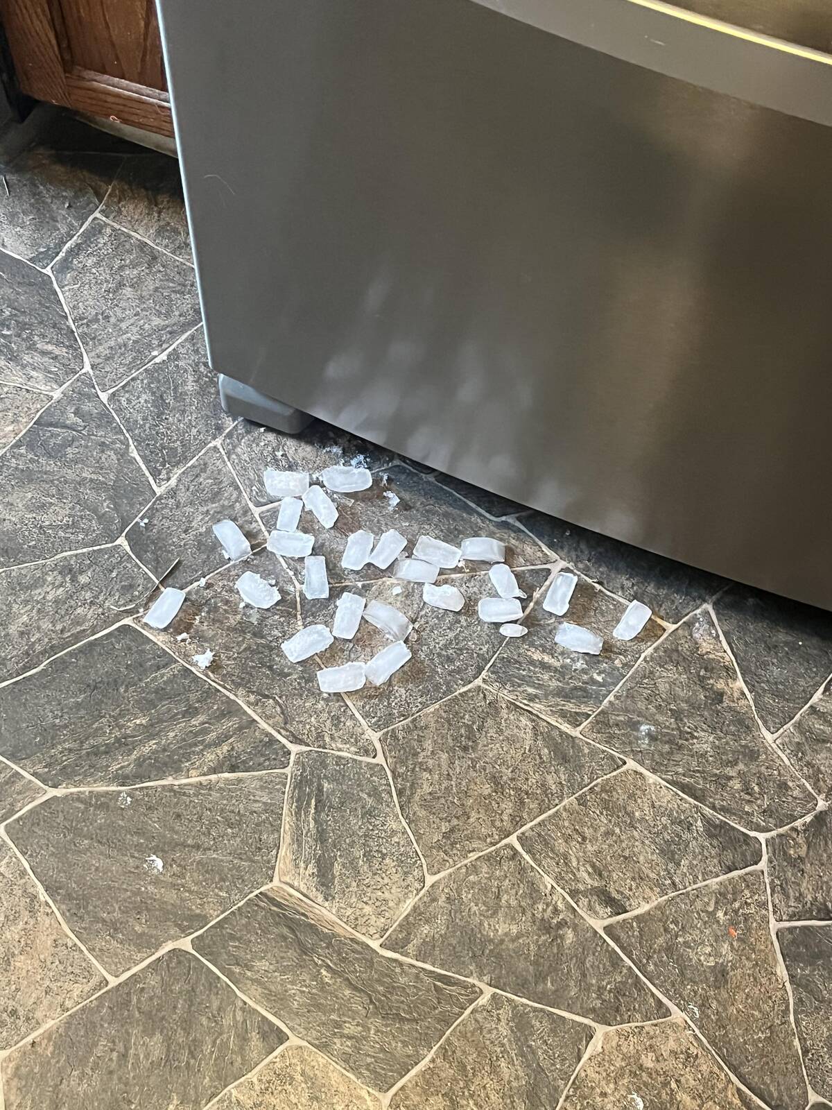“The ice cubes it makes fall through the bottom of the shelves, so often when I open and close the door, this happens”