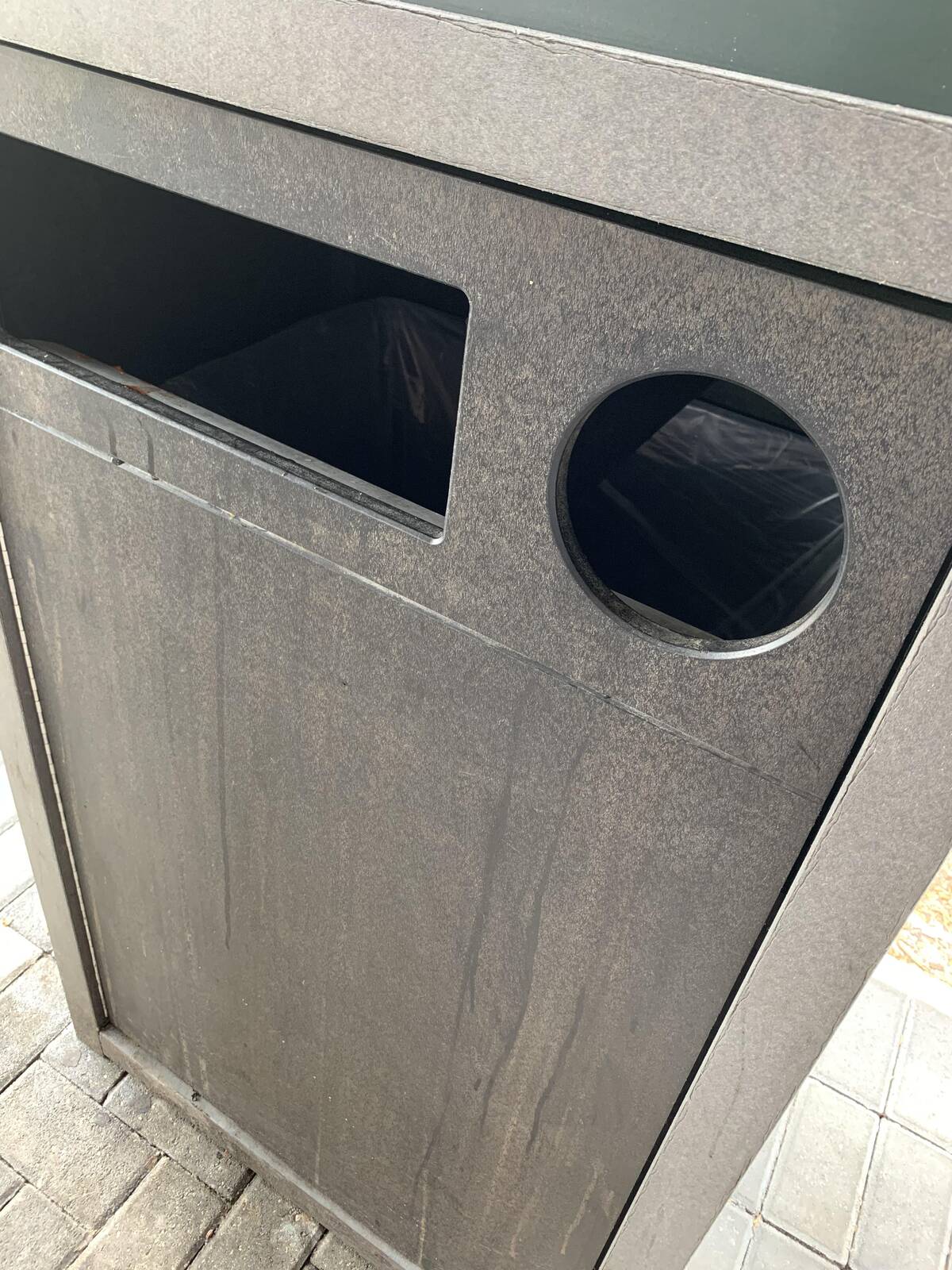 There’s no way to win here—choose the square hole or the round one, but neither actually matches what you’ve got. Maybe it’s a secret test of creativity: only those worthy may correctly dispose of their trash.
