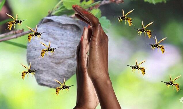Perfect example of what happens when you add clipart hands where they really don’t belong. The nest, the bees, the sudden urge to call a doctor… Did anyone actually proofread this? Because that hand has issues.