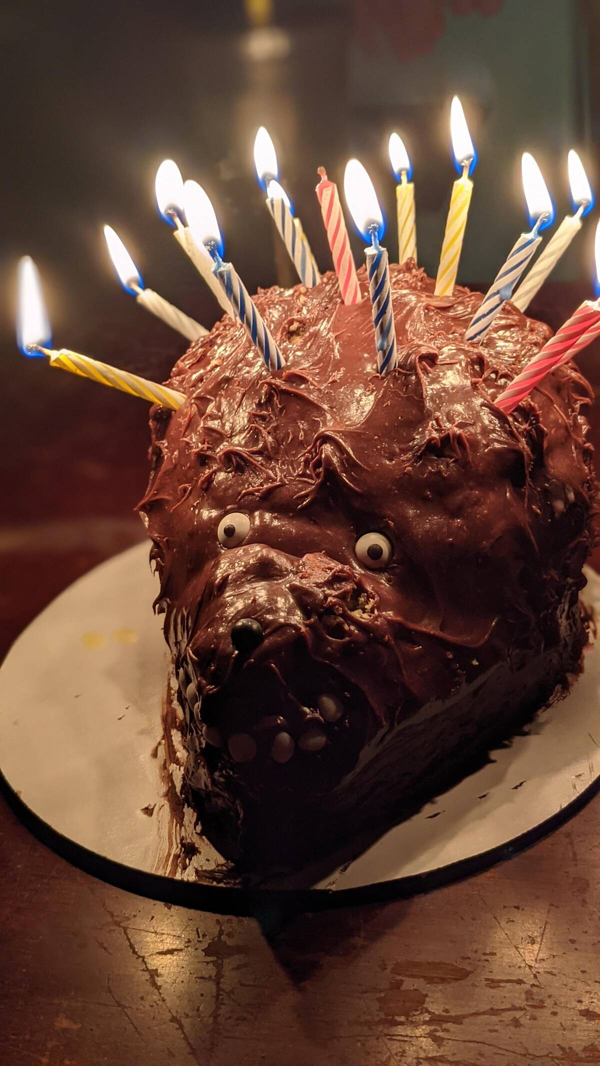 That’s a hedgehog cake? I love the enthusiasm but this little buddy looks like it’s seen things. The candles really give it a punk-rock vibe. Happy birthday to you! At least it’s memorable…and as long as it’s chocolate, all is forgiven.
