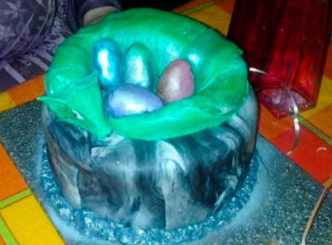 First time with fondant and it shows, but you know what? It’s tall, it’s got contrasting colors, and it’s dearly loved. Everyone remembers their first fondant adventure. Embrace the squiggly edges—it just adds handcrafted charm, and probably makes it twice as fun to eat.