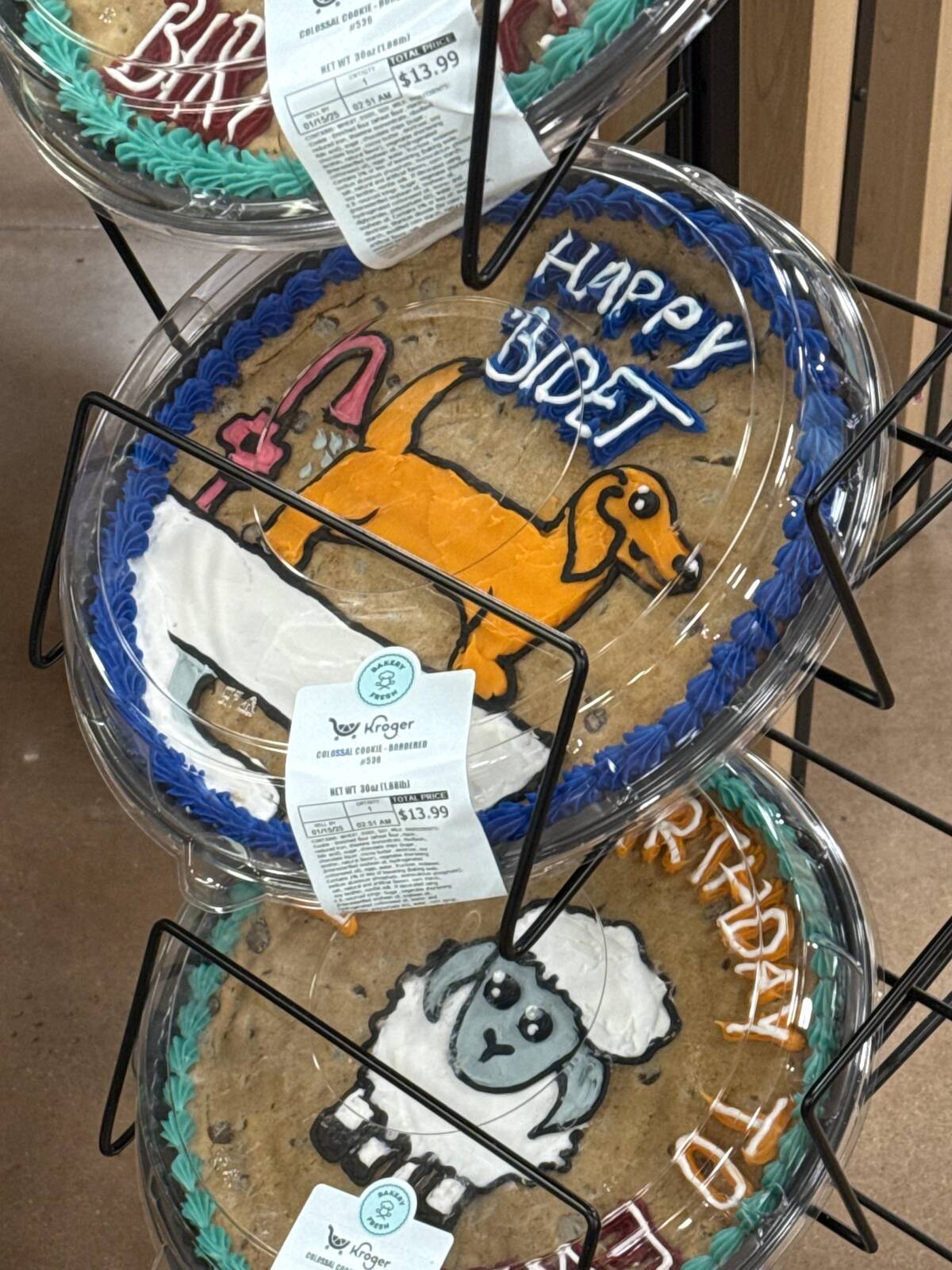 Are cookie cakes truly cakes? I think the jury’s still out, but that’s a delightful dachshund drawn in orange icing. Bonus points for creativity. Honestly, it may not be a traditional birthday cake, but who wouldn’t want a giant cookie? Sweetness is sweetness, especially with a side of cookie art.