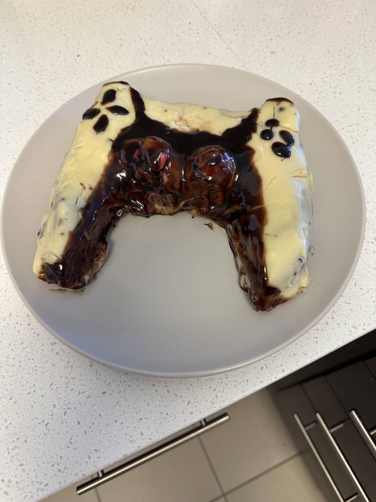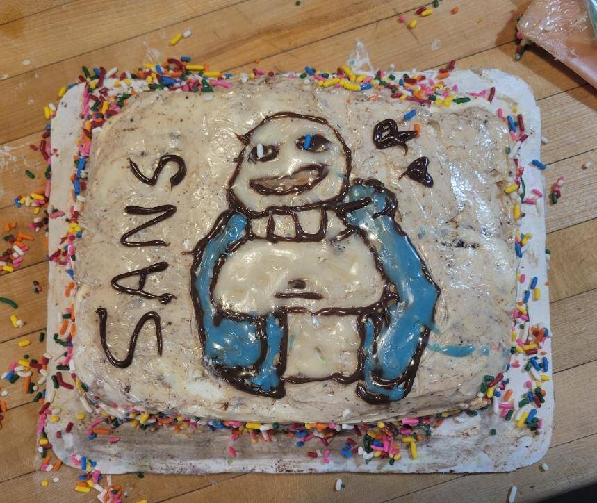 The literal interpretation of ‘EL even.’ You can’t say the cake decorator wasn’t listening—they delivered exactly as asked. Minimalist chic or accidental meme? Why not both. This will forever be enshrined as a birthday cake legend.