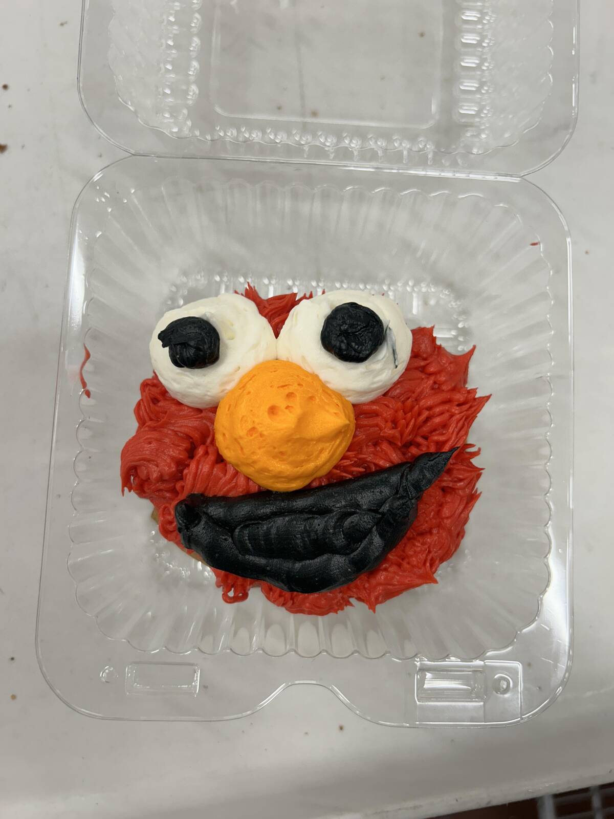 Traumatized Elmo is a wild energy for a cake. Honestly, those eyes are unforgettable and just a little bit alarming. I can’t look away. Someone definitely tried their best on this, but ended up somewhere between Sesame Street and a fever dream. Bet it still gets eaten in minutes.