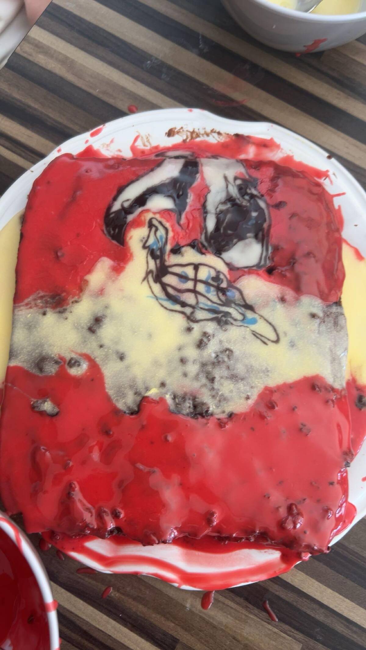 Sometimes, words fail but cake prevails. I honestly have no idea what’s happening with this one, but there’s a story here—buried under a flood of red icing. Fails can be beautiful too, especially when they leave you with a smile. This mystery dessert is destined to be a legendary party tale.