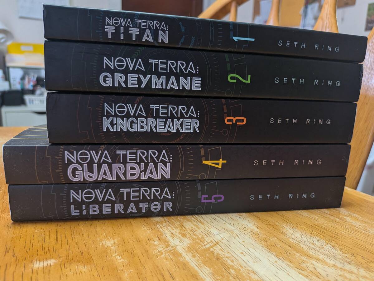 Well, the collection is almost satisfying—if only those two books could shrink or grow a bit. Why does the universe hate tidy bookshelves? It’s like they showed up to the party in entirely different dress codes. Close, but no perfectly-aligned cigar.