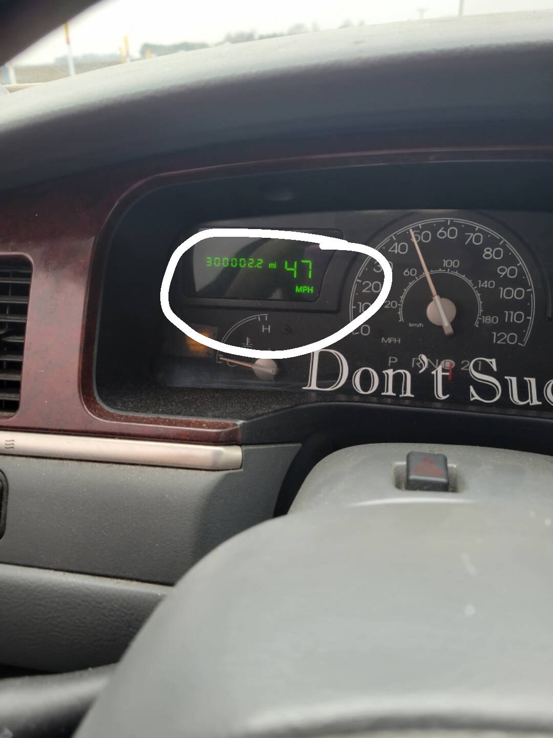 “Tried getting a picture at 300,000 miles. I missed it by 2.2”