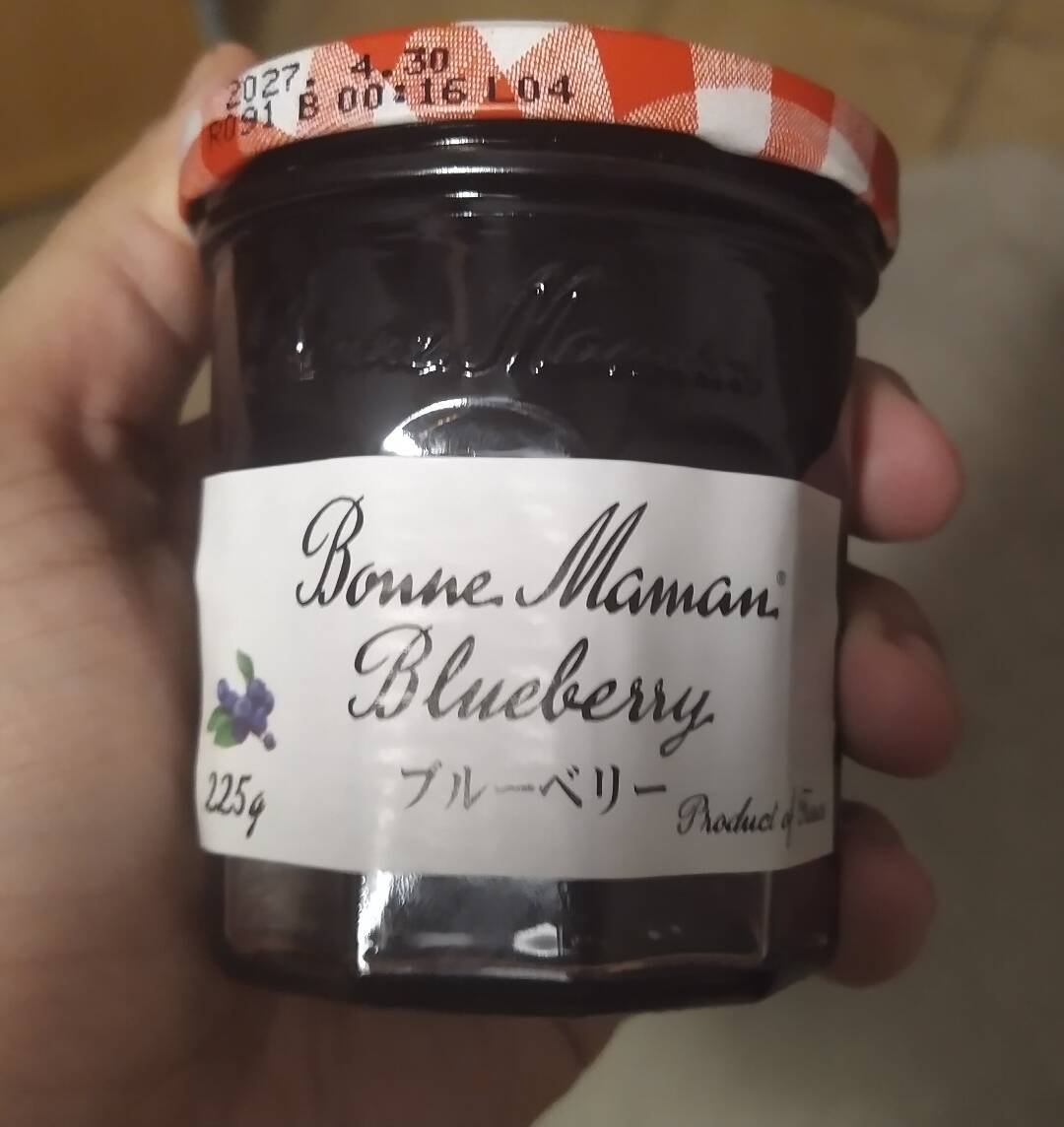 Here’s a truly international breakfast: Japanese writing on a jar of French jam, eaten in France. Proof that globalism lives in every kitchen cupboard (especially for blueberry lovers).