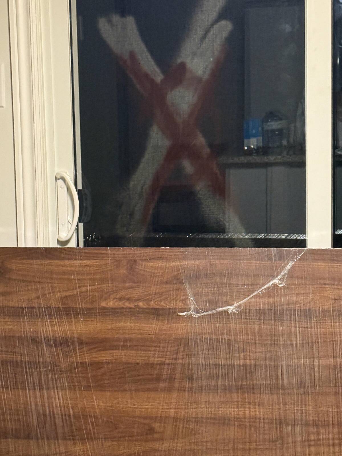 Not sure whether to feel safe or slightly concerned about this X. Is this home improvement or an amateur art project gone wild? I’ll just hope it’s a quirky way to mark screen repairs and not the sign of an elaborate heist in progress.