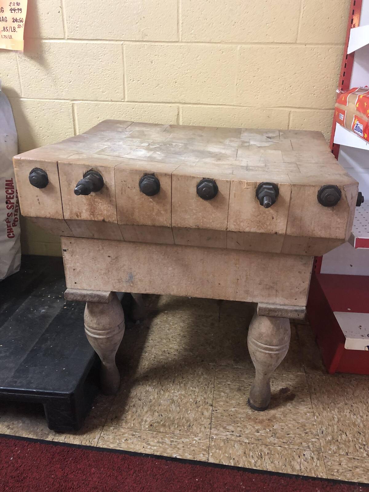 This butcher block practically radiates experience. If chopping meats was an Olympic sport, this old timer would have all the gold medals. Think about every meal, every story, and every cut that’s been made on that surface—history you can practically taste.