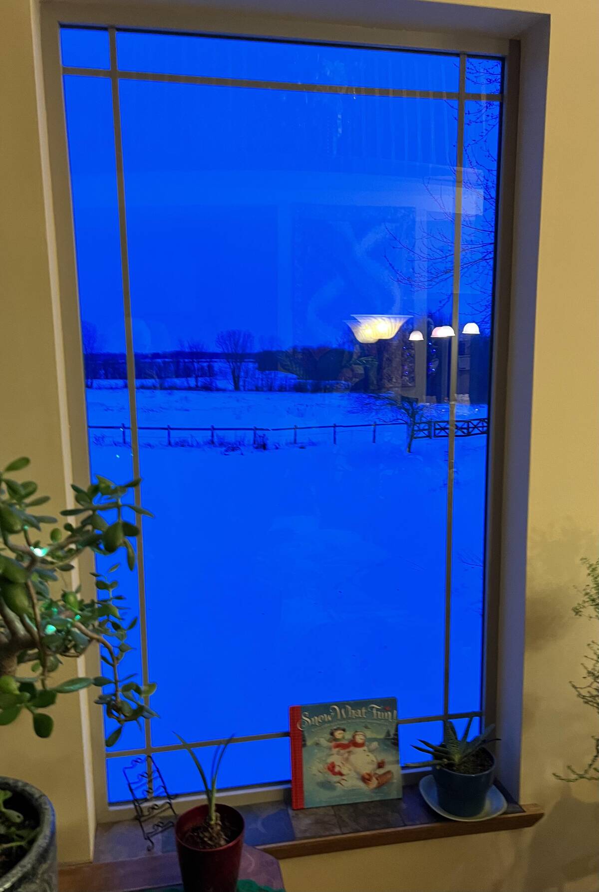 Whoa, is this what happens when you turn the blue light filter all the way up? I’ve never seen the world outside look so much like someone switched on night mode for the whole landscape. Honestly, I’d half expect an alien to walk by, just to complete this surreal scene.