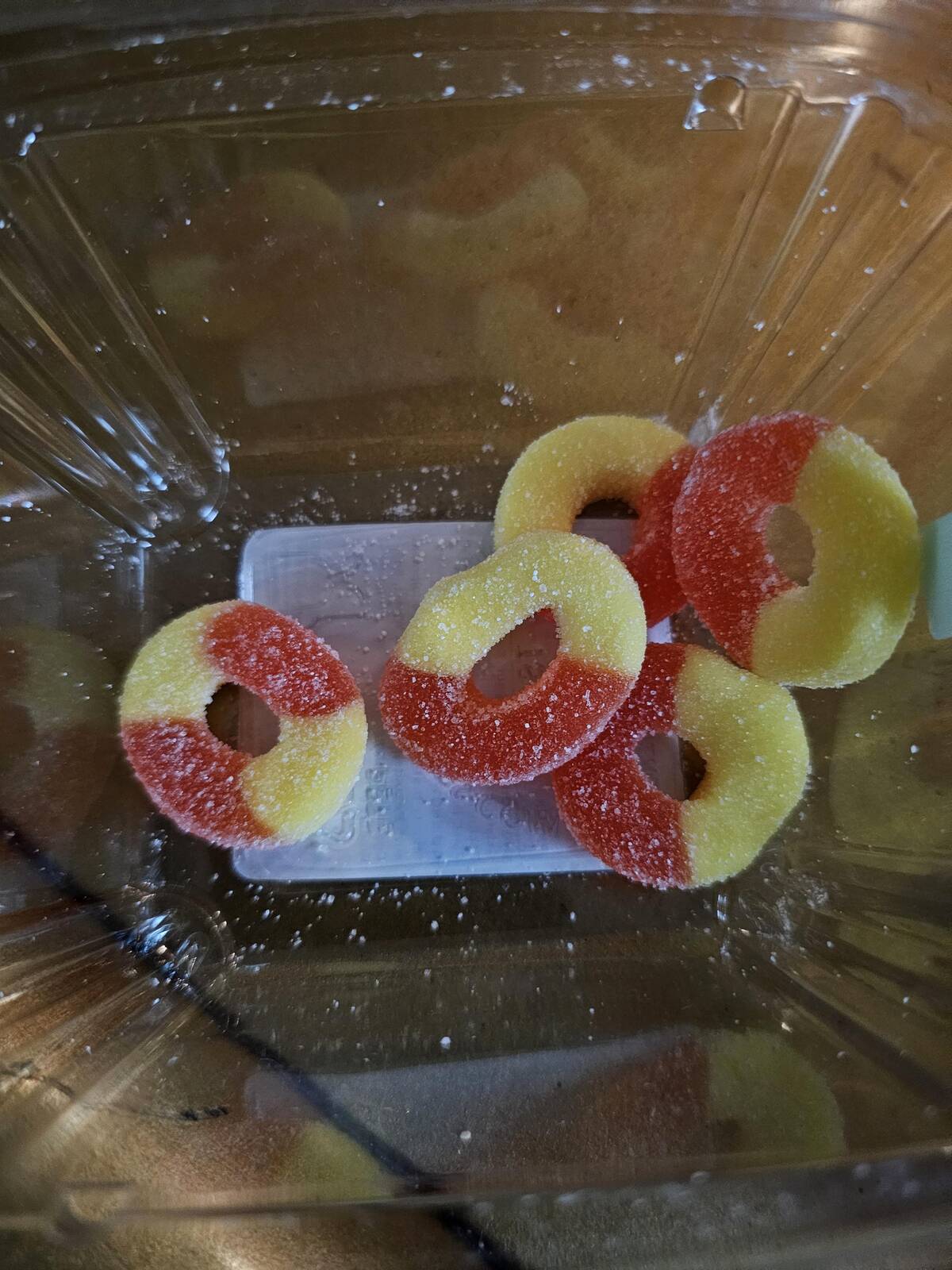 “One of my gummy peach rings was in quarters instead half”