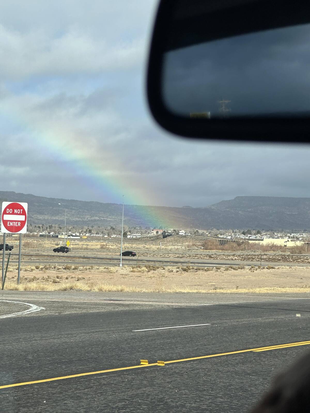 Is that actually the end of a rainbow? I didn’t think you could actually see where one lands—pretty sure there’s a portal to a leprechaun convention nearby. Attempting to resist the urge to pull over and investigate for pots of gold.