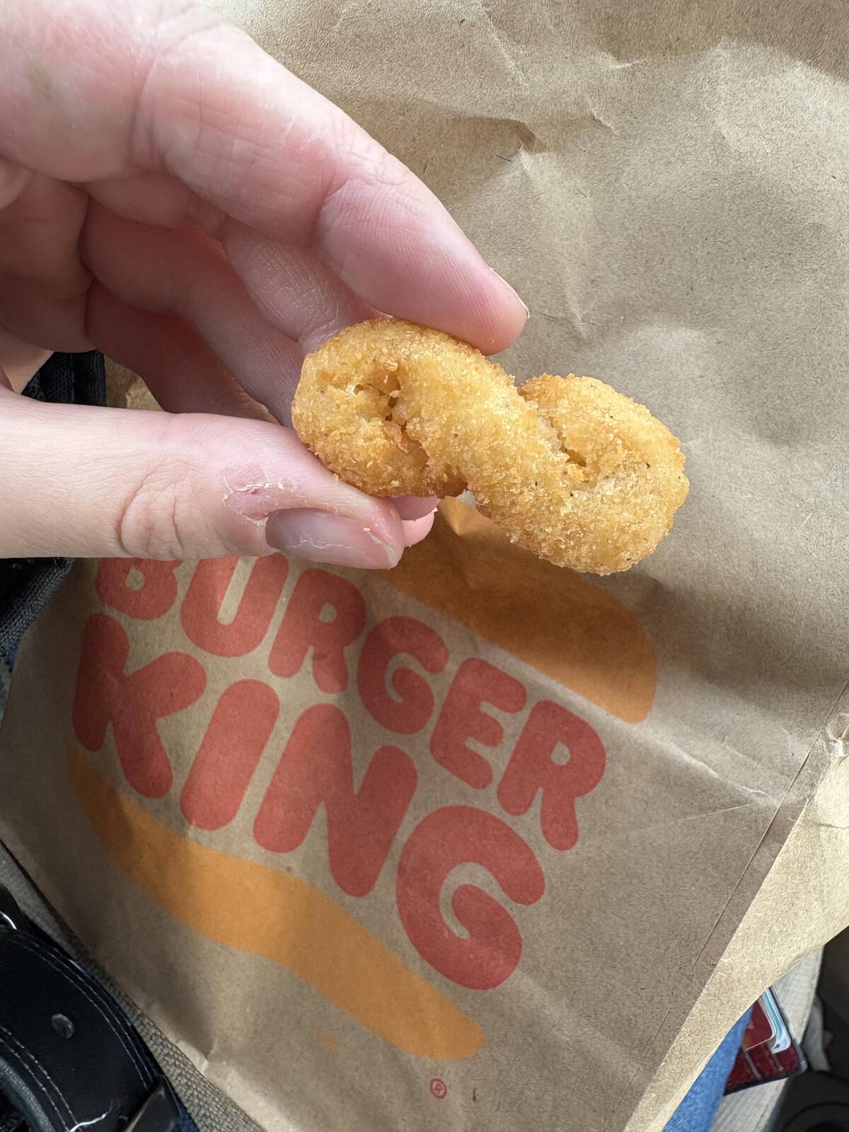 Never thought I’d see the day an onion ring decided to be infinite. Fast food mathematics at work: regular snacks just became an endless indulgence—visually, at least. Should Burger King name this the Möbius munch? Because my appetite might never find its edge.