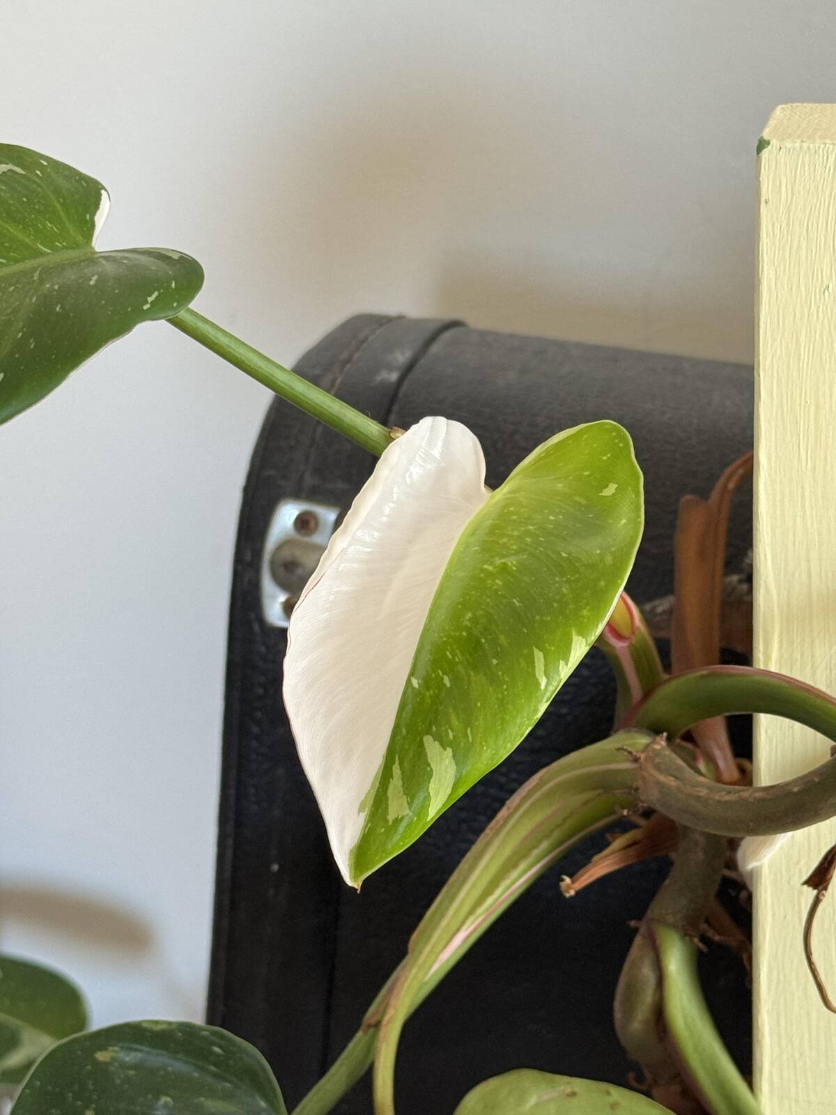 This leaf can’t decide if it’s going incognito or showing off—nature’s own take on dramatic contrast. The split is almost too perfect, like a plant pulled right out of a comic book. This is the kind of green thumb luck every indoor plant parent dreams of.