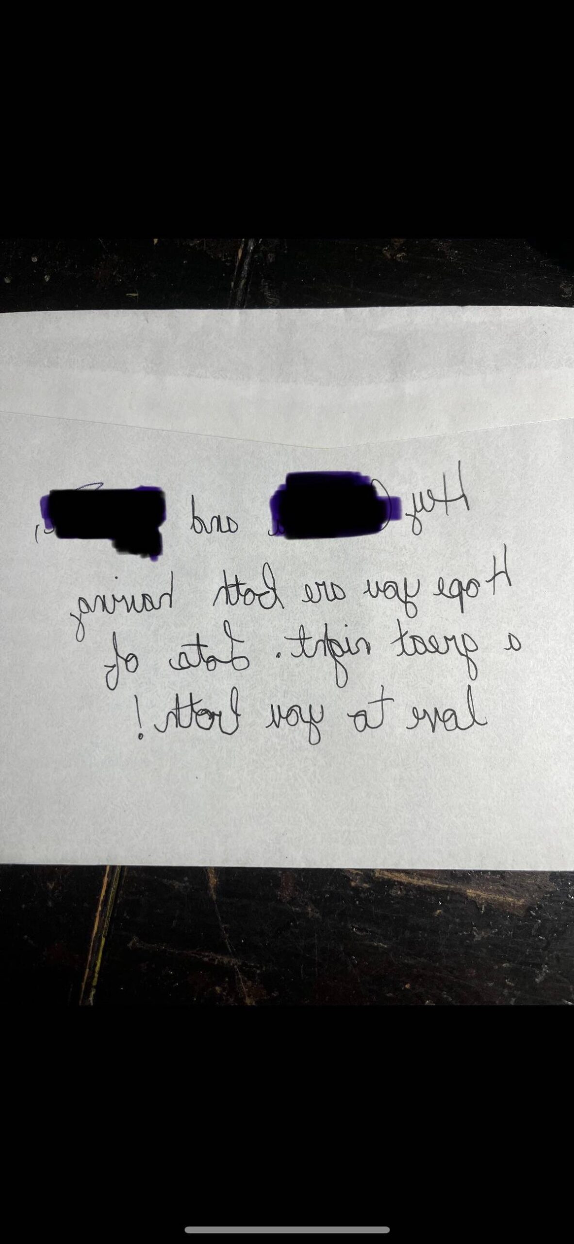 Mirrored and backwards handwriting is basically a superpower. My brain just broke a little trying to imagine writing even one letter like that. I’d pay to see the look on someone’s face opening a card like that out of the blue.