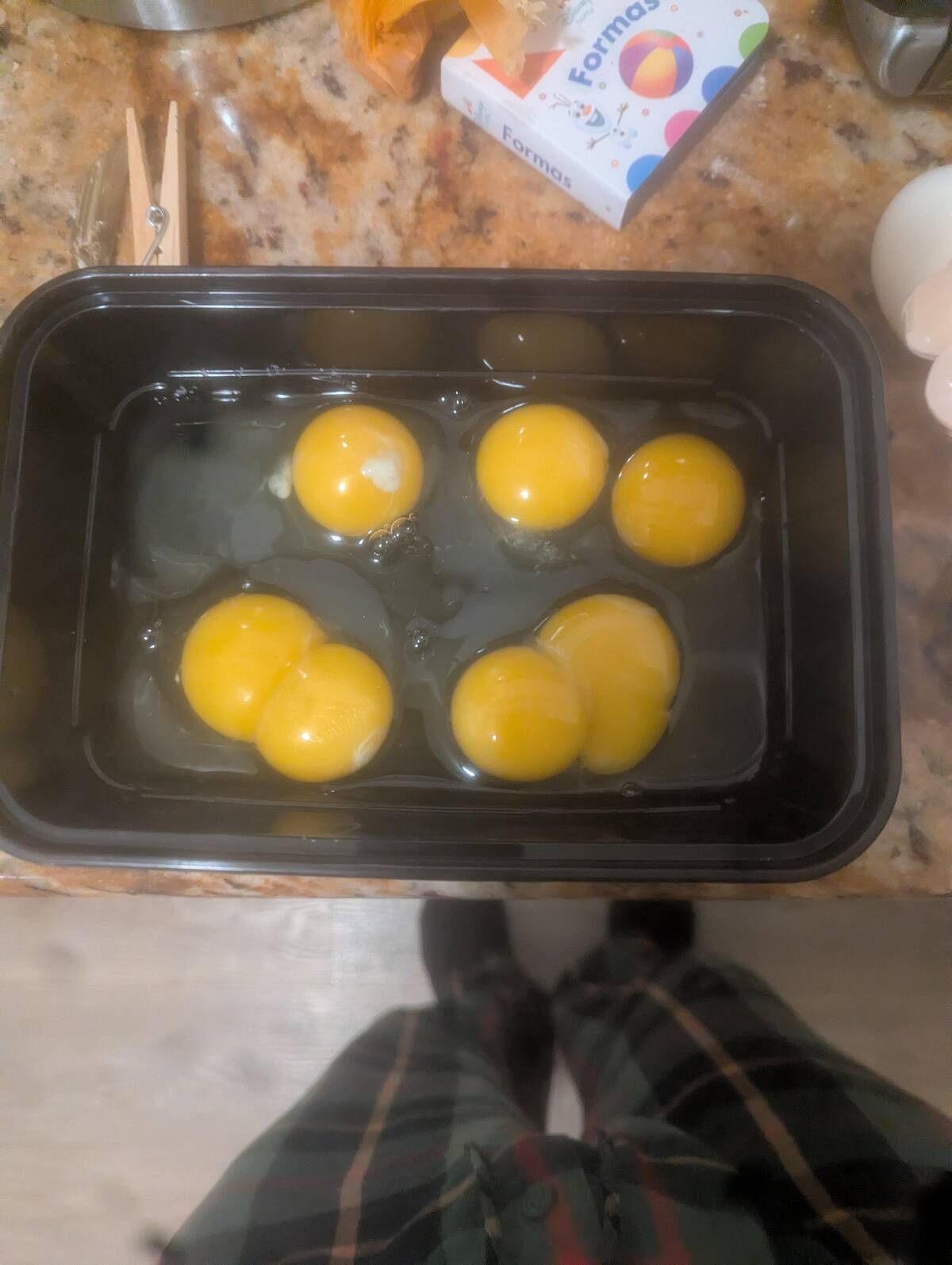 “3/4 of the eggs I cracked this morning were double yolks.”