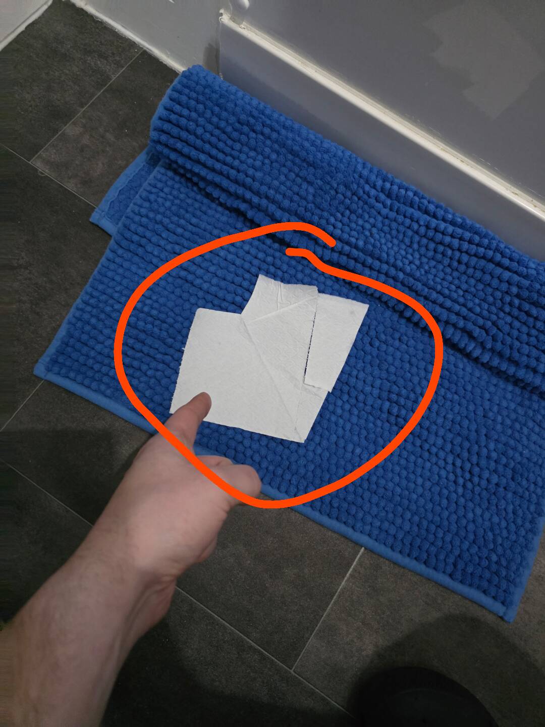 This sheet of toilet paper just broke the laws of physics—right angle achieved! How do you even fold or tear it like that by accident? The universe throws curveballs… or, in this case, perfect corners.