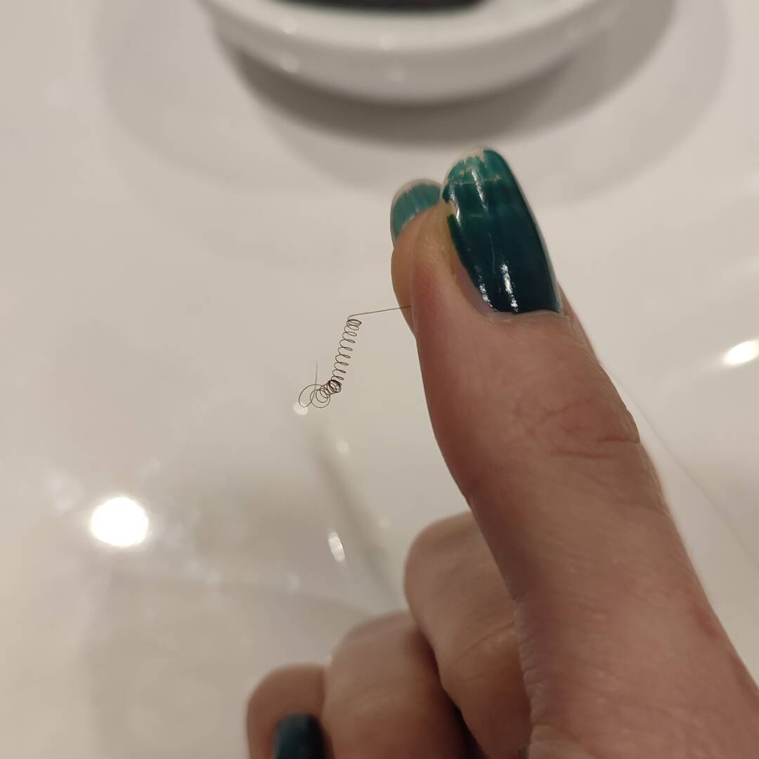 How did my hair end up looking like a tiny telephone cord? I swear it broke off in the most dramatic way possible. At least I now have a miniature spring. Bad hair day? More like physics experiment on my finger.