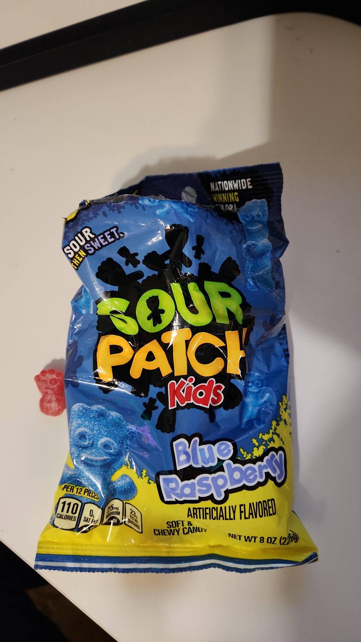 “A single red in my bag of blue sour patch kids. tasted the same as the rest.”