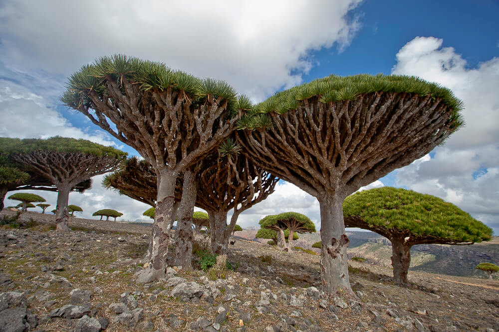 Socotra Island in Yemen is located between the Guardafui Channel and the Arabian Sea. Described as “the most alien-looking place on Earth,” the isolated island’s sovereignty has been disputed by both Yemen and Somalia. The landscape features dragon’s blood trees that resemble flying saucers on top of trunks.