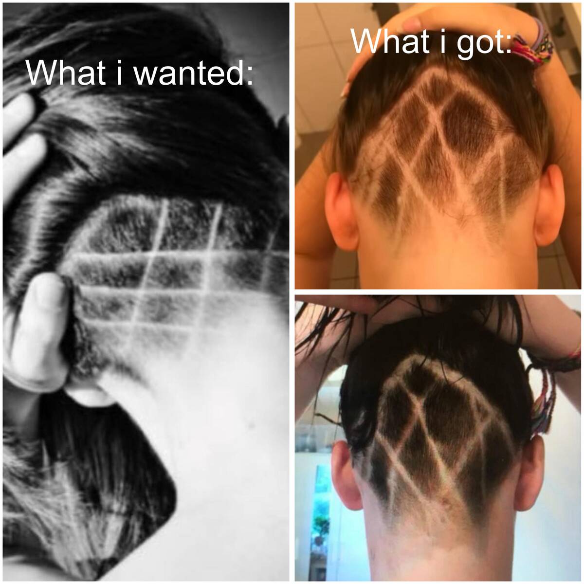 Hairdresser roulette: you show the perfectly geometric photo, and then…well, diamonds are forever (maybe just not in hair form). It takes guts to try a risky style—just wish the stylist had as much confidence in their straight lines as you did.