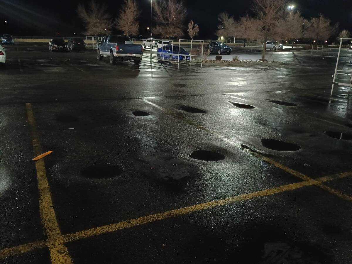 Those divots in the parking lot are almost hypnotic. I never thought so many cars could actually leave scoops in the asphalt just from being there every day. Now it looks like an odd polka-dotted dance floor for vehicles after a rain.